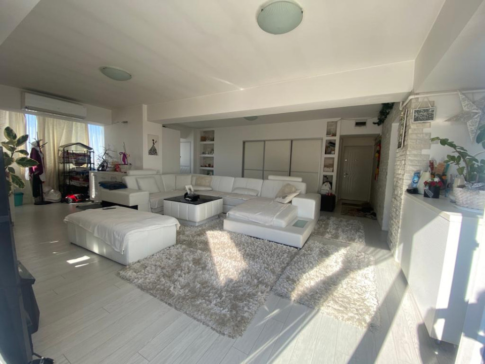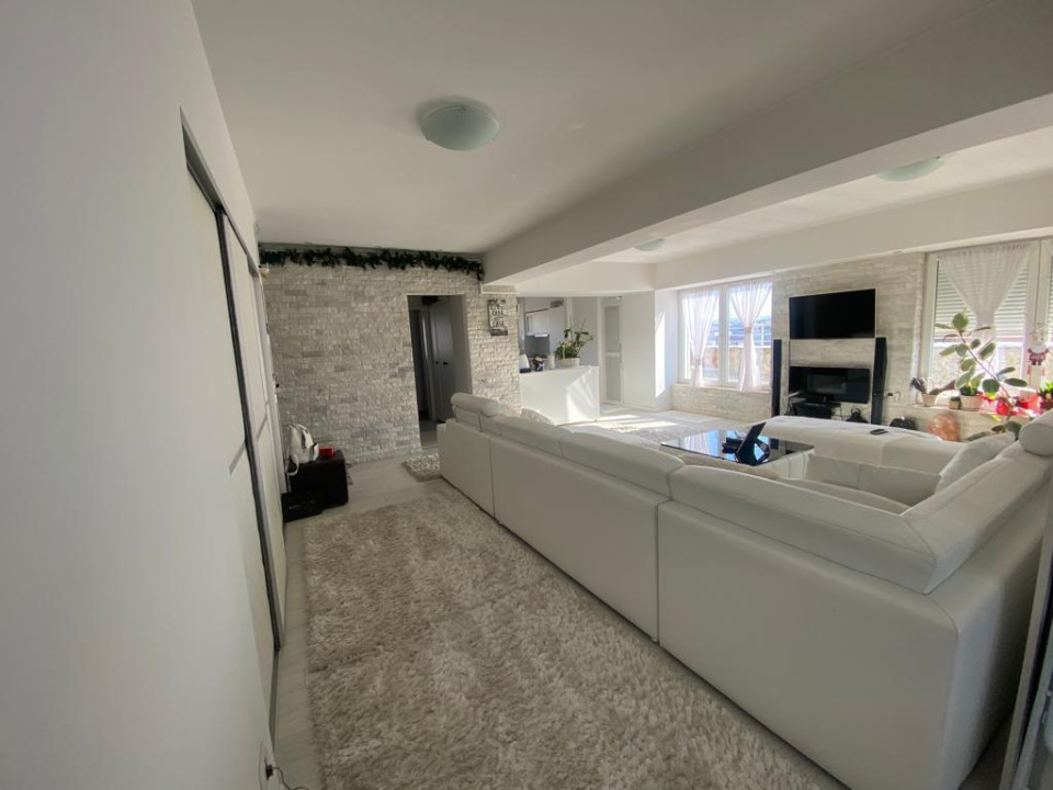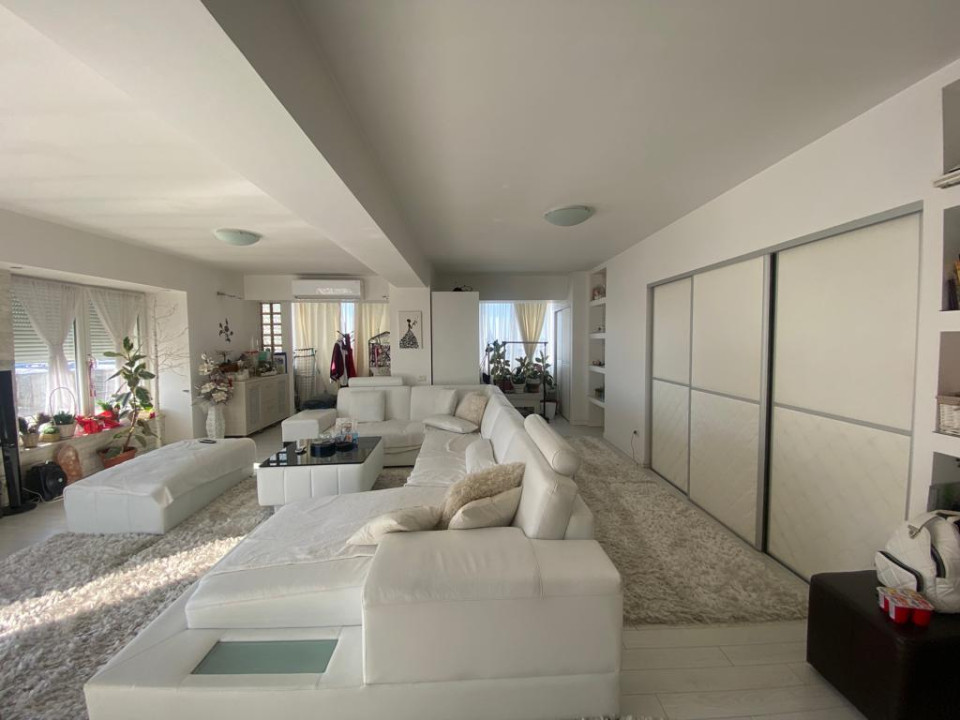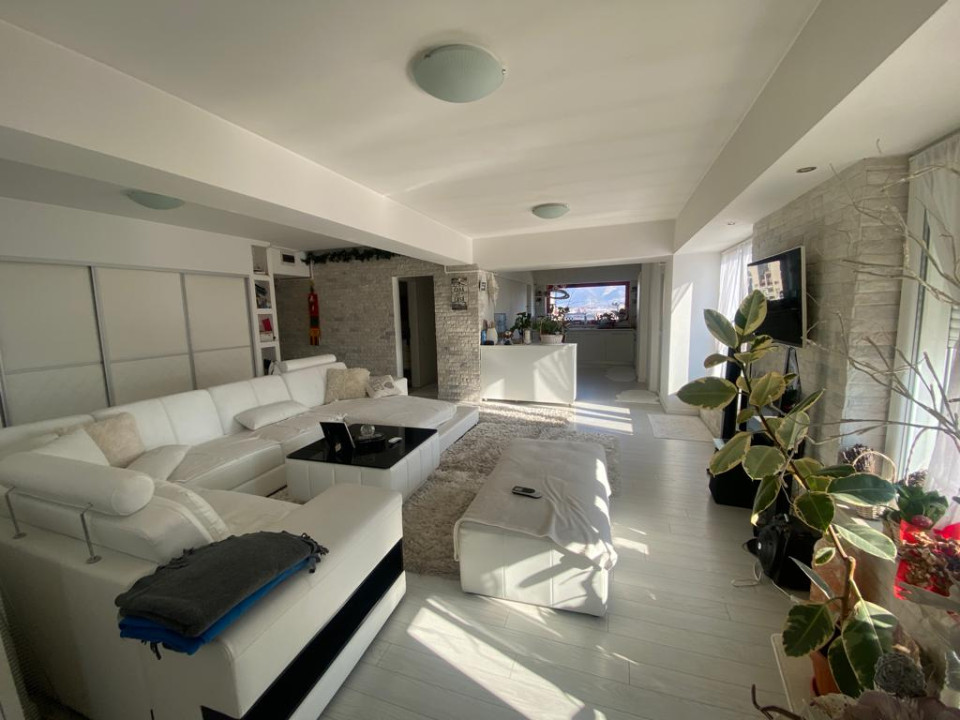 -living mare cu bucatarie open space(cine doreste poate separa bucataria prin perete despartitor)si acces pe terasa de 42 mp cu priveliste superba.Pe terasa este efectuata scurgere si racord de apa si electricitate, astfel incat se poate monta cu usurita atat un grill electric cat si o piscina.