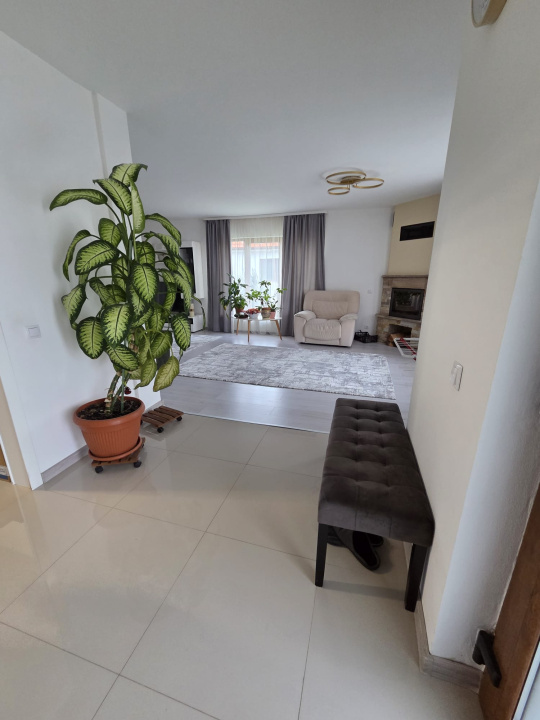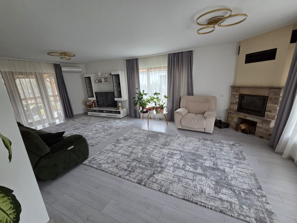 Compartimentarea include living luminos cu șemineu, bucătărie separată cu zonă de dining, trei dormitoare – dintre care dormitorul matrimonial cu baie proprie, încă o baie pe hol, precum și două terase spațioase, ideale pentru relaxare.
