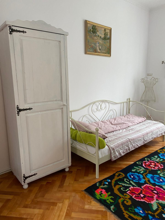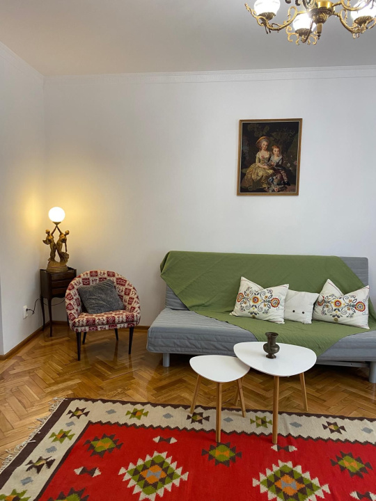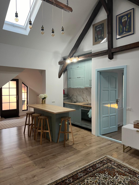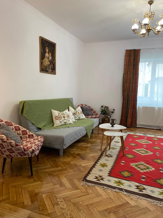 Se oferă spre închiriere un apartament situat într-o casă, compus din 2 camere, living cu bucătărie open-space și baie, având o suprafață utilă totală de 100 mp.