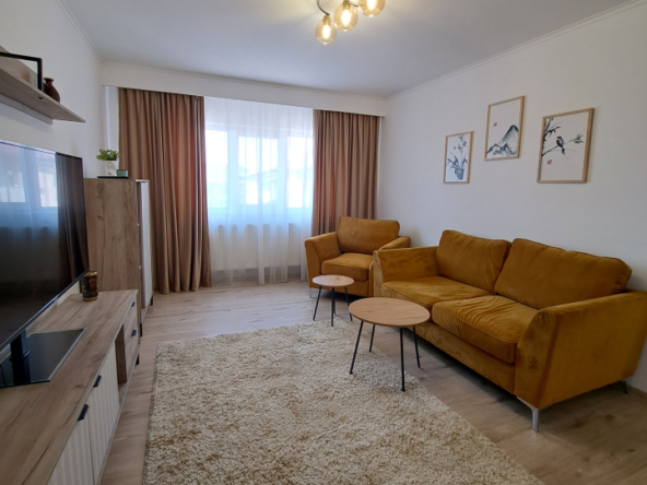 va oferim spre inchiriere un apartament 2 camere, semidecomandat, situat la etajul 3 intr-un bloc de caramida izolat exterior, finisat complet totul nou, microcentrala cu calorifer, instalatie termica si electrica nou efectuata, climatizare, gresie faianta si parchet. Se inchiriaza complet mobilat si utilat, pozele sunt la faza de finalizare finisaje