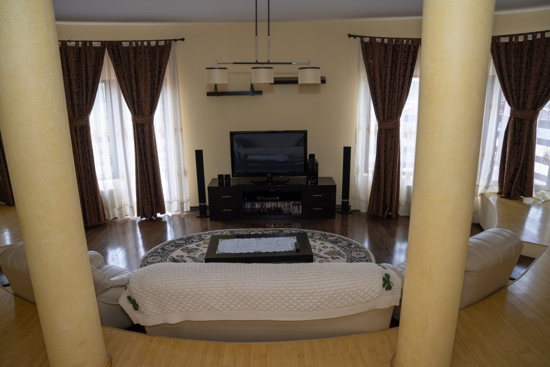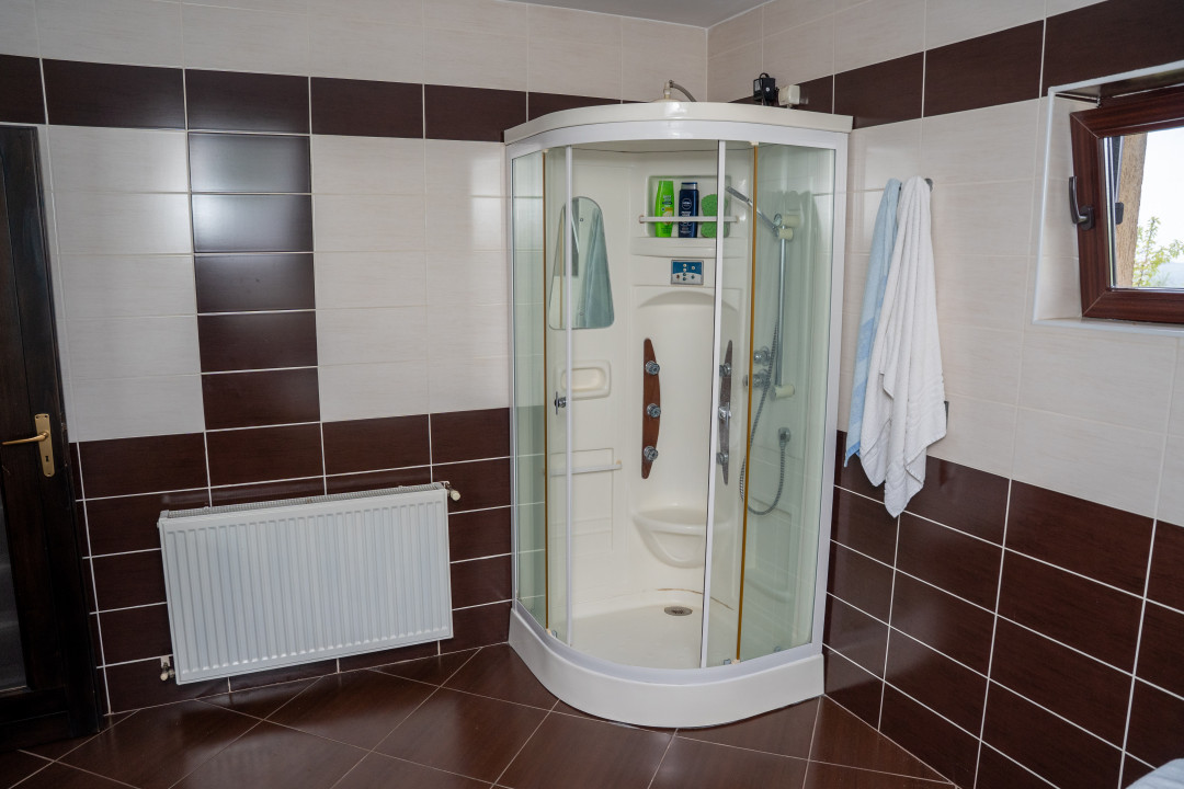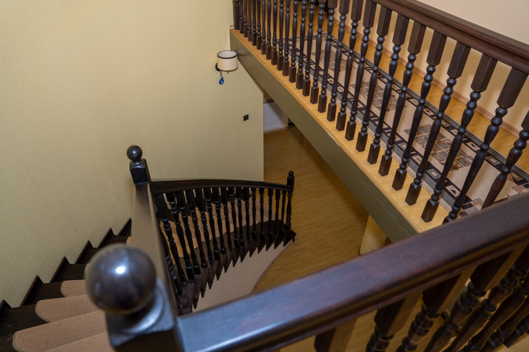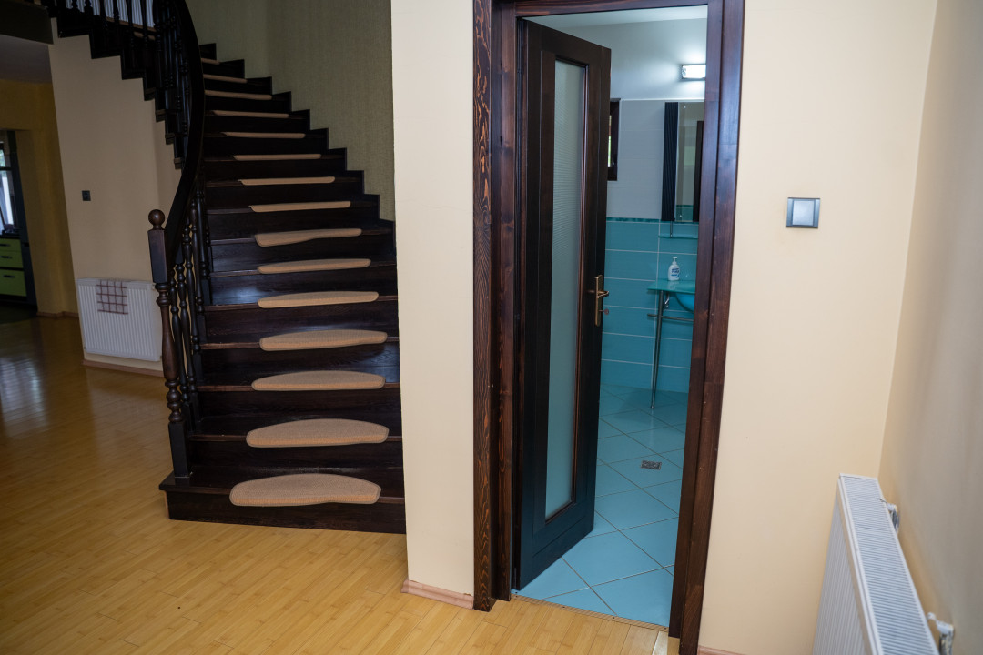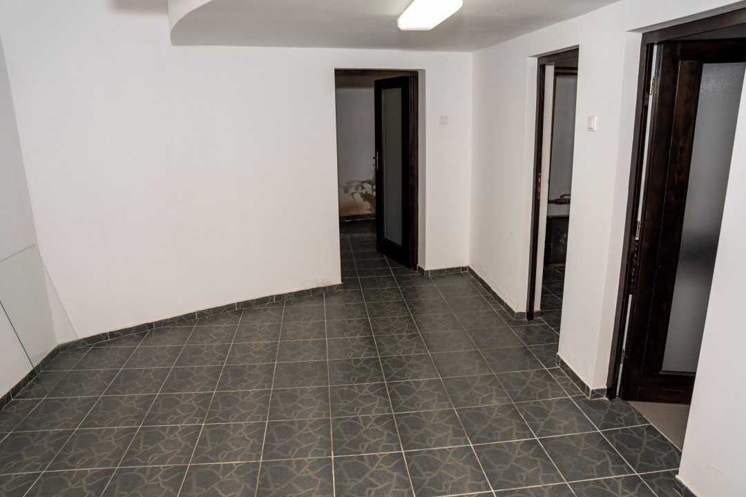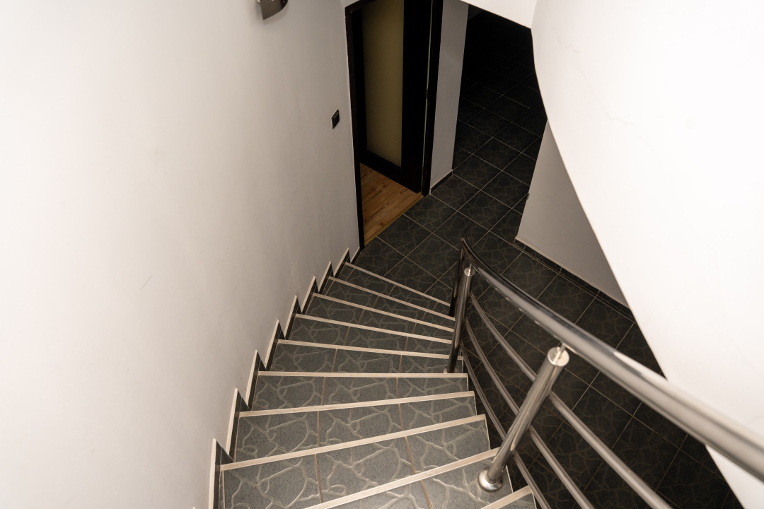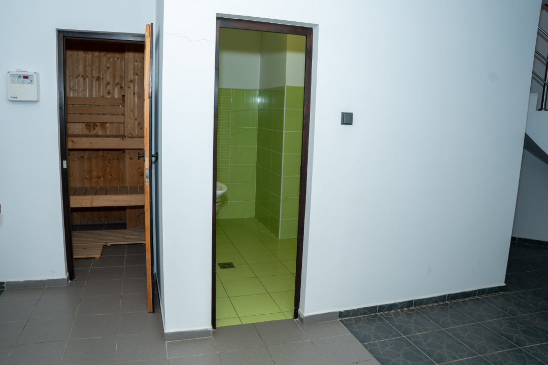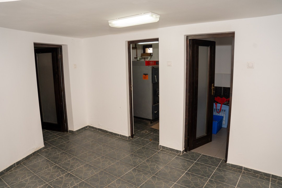 – Subsol: sala de sport, 2 beciuri, baie, depozit, spalatorie, camera pentru centrala termica, garaj cu zona destinata pt atelier, sauna si hol;