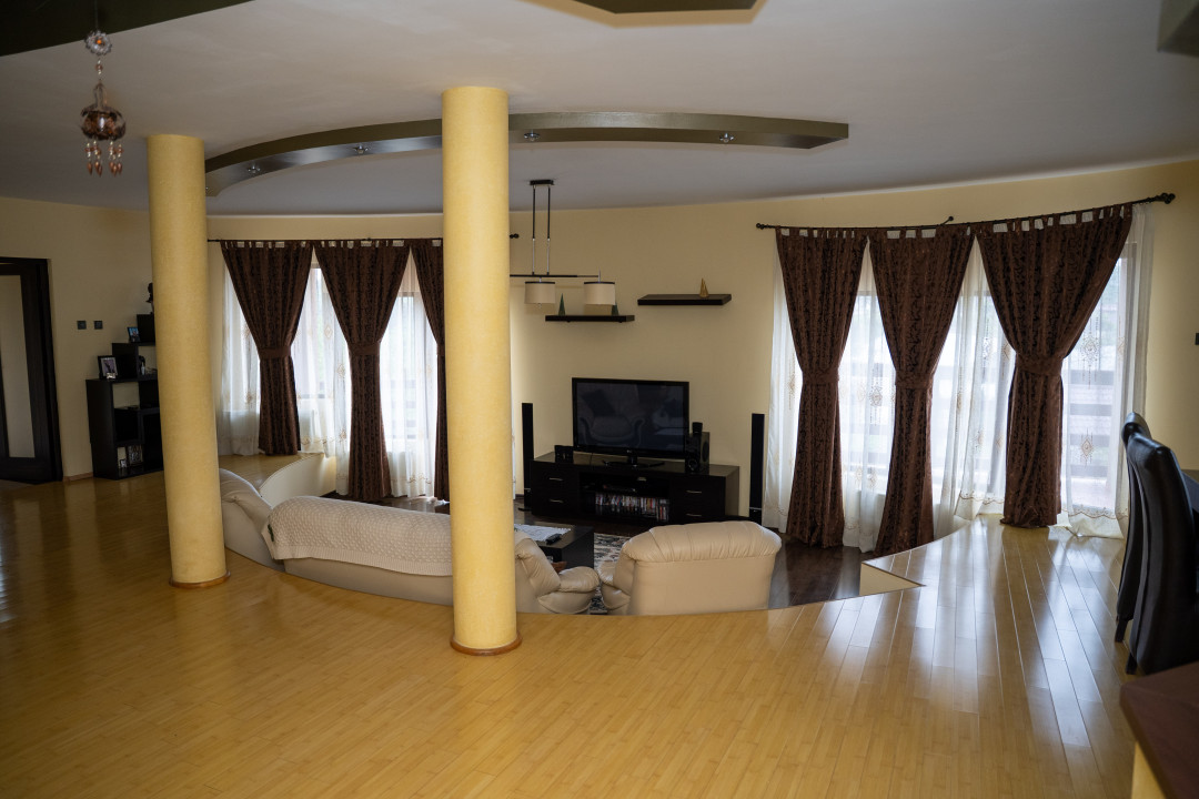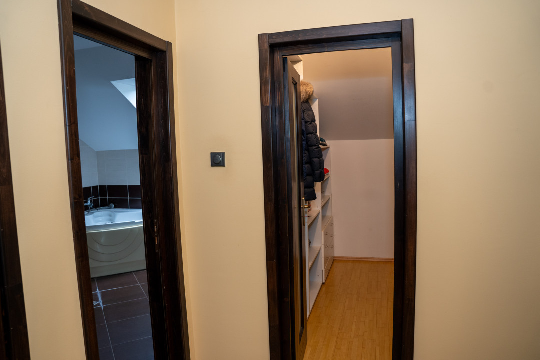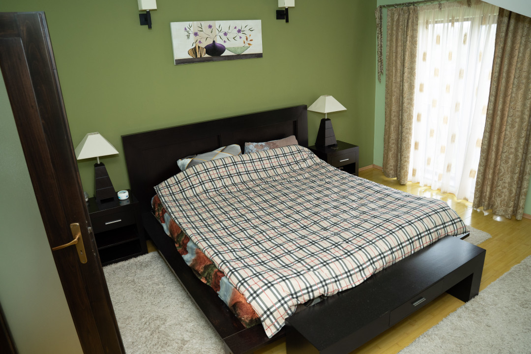 – Mansarda: 2 dormitoare matrimoniale cu baie si dressing, dormitor, baie, hol si 2 balcoane.