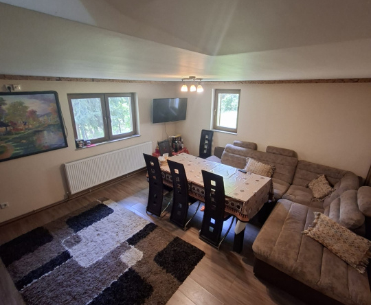 Casa este complet finisata, se vinde partial mobilata si utilata, incalzire cu gaz, microcentrala in cupru si semineu pe lemne.