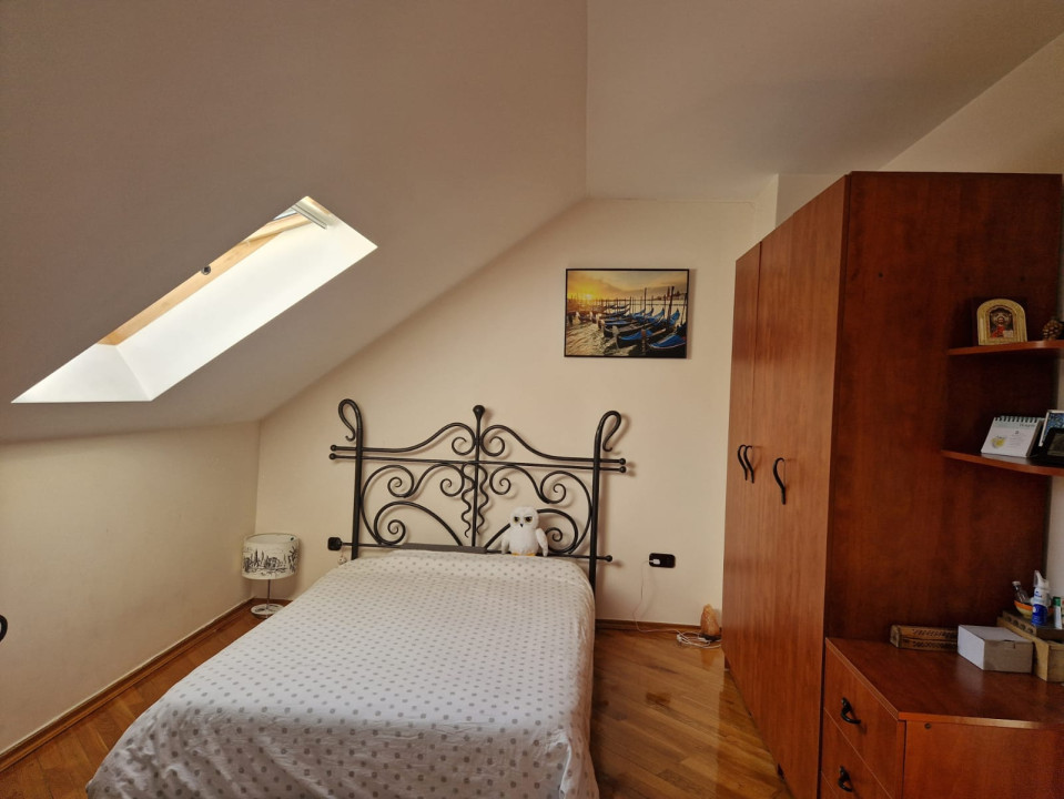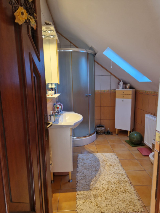 – Etaj: 2 dormitoare, baie, hol amenajat cu dulap pentru depozitare.